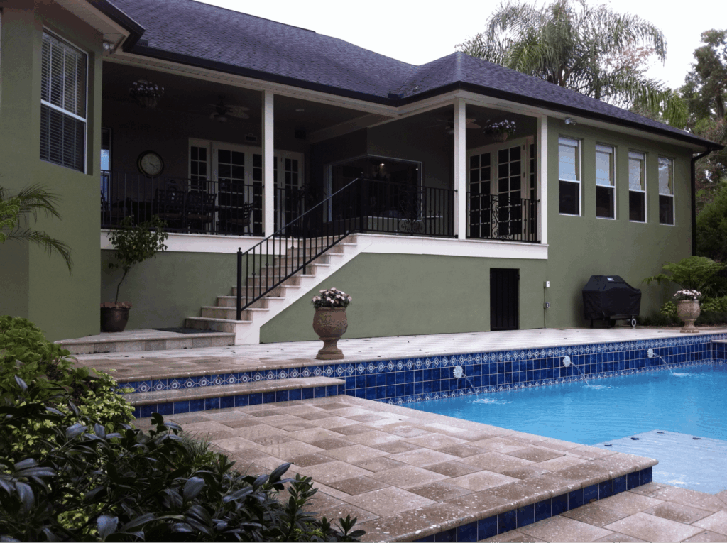 In these settings, the deck becomes more than a simple platform for furniture. The space often includes seating areas, outdoor dining zones, and fire features that feel anchored by the stone surface. The elevated structure allows homeowners to enjoy views and breezes, while the stone finish reinforces the feeling that the space is built to last.